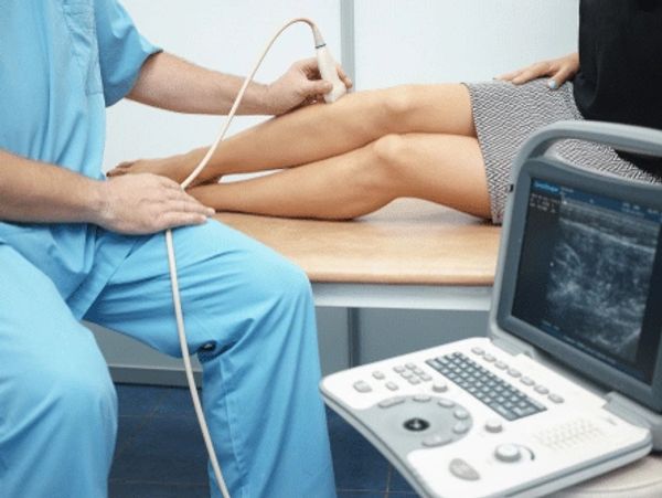 A venous Doppler ultrasound is a non-invasive diagnostic test that uses sound waves to examine blood flow in the veins of the legs and arms. It can help identify blood clots, varicose and leaky veins, blockages and other issues that affect blood circulation. A sonographer uses a small handheld device called a transducer over the veins. The transducer sends high-frequency sound waves into the veins. The sound waves bounce off red blood cells in your blood vessels. The transducer picks up the returning sound waves, called echoes. A computer analyzes the echoes to create images or graphs that show blood flow.